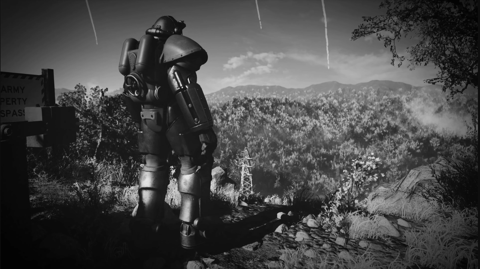 One notable army group was that posted at the Mariposa Military Base in California under command of Captain Roger Maxson. Mariposa was a facility seconded to the FEV project with Maxon's company assigned to guard the base, kept in the dark to the nature of the experiments occurring under their feet. Taking shelter within the base's underground facility as the bombs began to drop, Maxson and his troopers were horrified at the sight of the malformed mutants their scientist charges had been creating. After interrogating and then ultimately executing the base's science personnel, and having received no response from the chain of command, Maxson ordered the base to be sealed with explosives before leading his unit on a march across the freshly-scoured California to the government bunker of Lost Hills, their power armour saving them from the maddened survivors, frenzied creatures and radioactivity threatening the company along the way.