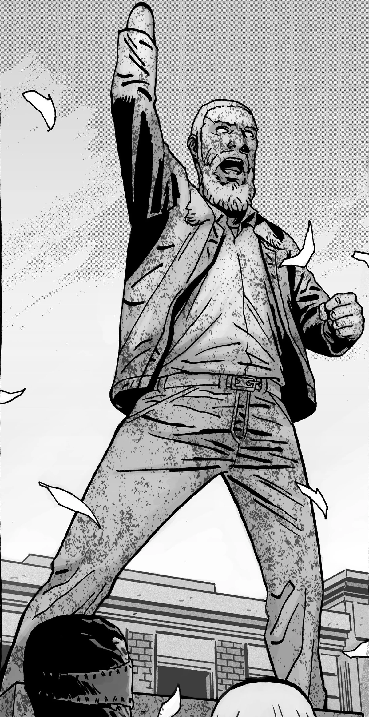 Credit: Skybound EntertainmentWhile not a community, these 6 people are methodical and capable enough to be a force in their own right. On their way to Washington D.C., Rick's group starts noticing shadows stalking them in the forest. These are the Hunters, a group of people - among them former parents - who have adopted a sick philosophy. Being somewhat incapable (or really unlucky) at gathering supplies, their group eventually turned to cannibalism.