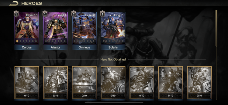 The content that you'll end up paying for looks to be unlocking legendary heroes. You can attempt to summon (or "rescue") basic heroes several times per day, mostly getting resources but sometimes getting a hero. So far I have managed a Primaris Lieutenant, a Redemptor Dreadnought and a Chaplain. These are so "generic Primaris" that I suspect these are guaranteed for all new players. The real meat and potatoes will be in getting the legendary heros, which are surprisingly not all Ultramarines - in the screenshot below you can clearly see Pedro Kantor, Shrike, and Captain Lysander, which is nice.