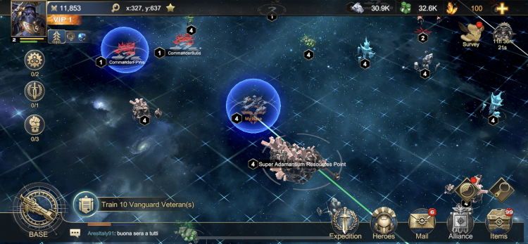 The "things to do" are quite varied. You can follow the story missions, explore space around you for resources or attack nearby Chaos bases, build up your alliance's base by donating resources and building defence networks, attack Chaos ships that appear near you and do PvP battles. I haven't tried the PvP yet, either it's not available in Beta or it requires your alliance to declare war, I haven't quite worked it out.