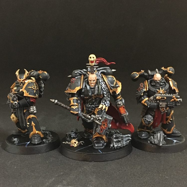 Basically a Chaos Space Marine with a boltgun and no Legion Trait and no weapon options. They can take the Combat and Zealot options (unlike their Heretic Astartes cousins, who just lost the ability again, hilariously), but can’t take melee weapons so it’s not great. Their primary value is that they can give nearby chaff units the ability to re-roll Nerve tests, keeping your other units in line. You probably won’t need more than one on your team at a time.