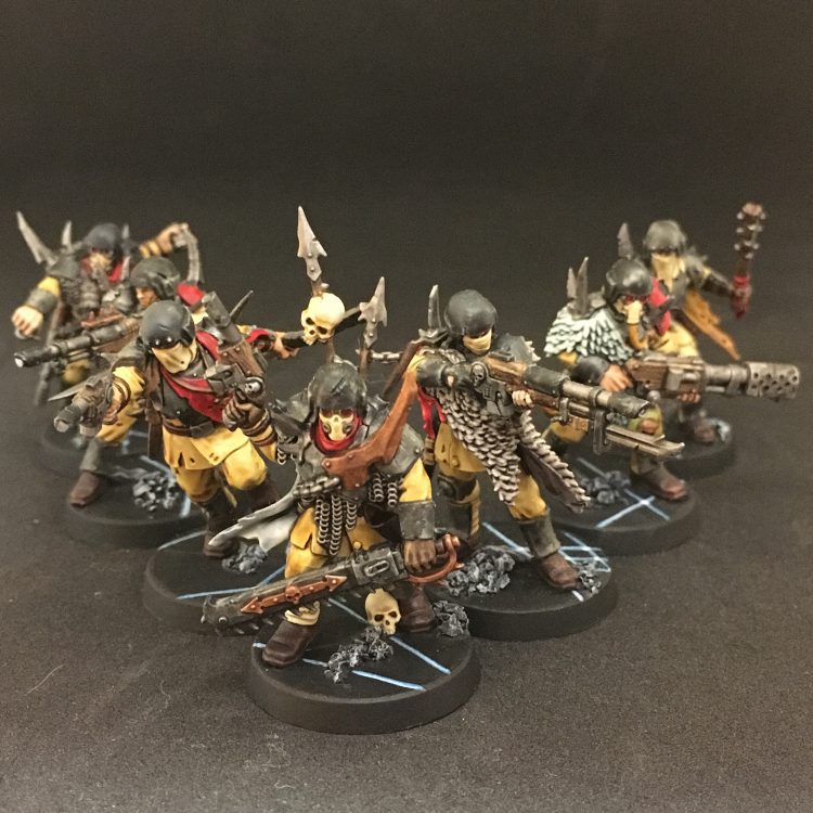 Like Chaos Cultists from the Heretic Astartes faction, but with much better weapon options and the ability to bring higher AP shooting to the table thanks to the fact they all have frag and krak grenades for some reason. They can also take a grenade launcher or heavy stubber, and the champion can give you another Leader option that isn’t terribly expensive, either. The krak grenades are going to be critical for your team, because again, you're going to struggle with AP otherwise. But it also means you're going to have to get real close to start dishing out AP attacks and they're BS4+ when they start lobbing them.