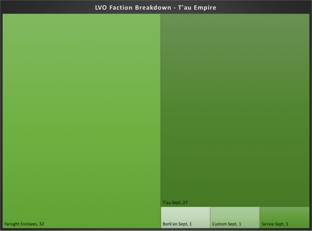 T’au have been a persistent factor in the meta ever since their release in early Nachmund. Here at LVO they make up 6.4% of the meta, a small increase from the 5.6% they’ve made up over the last three months.