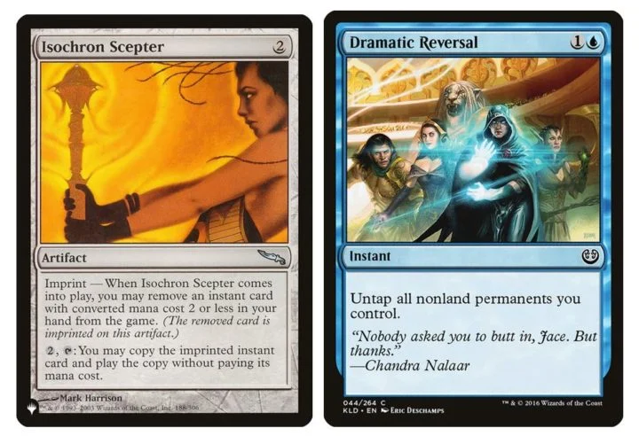 Combining Top and Reality Chip alongside a cost reducer like Etherium Sculptor draws the deck, and from there we can access one of our kill conditions. This can also be achieved by way of looting with the classic, too-slow-for-cEDH Dramatic Reversal+Isochron Scepter, which is good enough here with the fact that Urza both makes mana rocks for the loop's requirements, and himself loots through the deck when performing the combo. Both of these combos are accessed primarily through Artifacts, although 'Dramatic Scepter' is a bit harder, requiring an Instant.