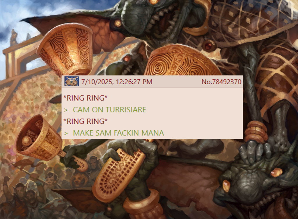 The only way baby Urza accrues enough value to be worthwhile as a Commander is by getting at least 2-3 triggers each turn cycle. Without accessing additional mana on each players' turn, that often means you're spending mana that could be used to develop your board state at Sorcery-speed on Instant speed looting, which only impacts the gamestate insofar as creating a mana rock. That has decent value in the early game, where you'd welcome paying 2 mana for a Signet-like, but quickly becomes something you'd much prefer to do for free after the point where those mana rocks are woven between haymakers, if at all. With that said, we do have a few ways of unlocking the delicious nectar of mana within the Powerstones generated each turn, the most alluring of which is Amulet of Vigor. For a single mana, this means every single one of your looting effects that costs {1} is now mana-neutral across the turn cycle, and the vast majority are card advantage-neutral as well. This can also be achieved, to even greater effect, with Unwinding Clock, which allows you to go mana-positive and quickly get out of hand if left unchecked. My favorite effect for this purpose, however, is a bit more humble. Not many Mana Value 3 rocks are playable, especially with a 3 mana Commander, but Victory Chimes does exactly what we need it to do, while not being as menacing as Unwinding Clock. Moreover, that mild political aspect should not be forgotten in EDH, as the phrase 'If I only had one more mana' is an open invitation to a Faustian bargain. There's even the new card Moonlit Meditation from Edge of Eternities, which turns your Powerstone generation into something else, often making your value loop far spookier. This is a fairly fragile card, and I'm still in the early stages of testing with it, but when it goes off, it goes off 4 times per turn cycle. Each of these options functionally scale to game size, meaning young Urza is far more likely to live out his dream of 4 Powerstones each rotation of the table.