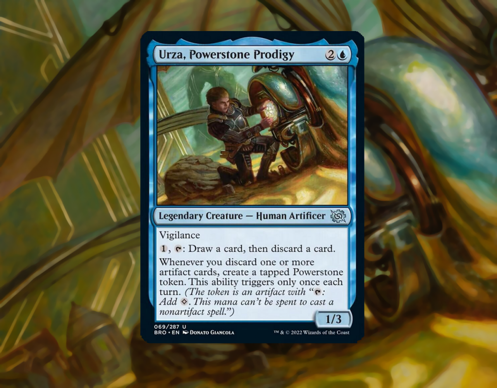 Yet, in The Brothers' War, we got a chance to see everyone's favorite eugenicist war criminal throughout many stages in his life, and the earliest depiction of the man who would be Urza is also a Monoblue Artifact-matters Commander, and one that leads to absurdly fun play sequences without the whole of your play group feeling bad. This is Urza, Powerstone Prodigy, bringing discard and ramp to a color sorely lacking representation in those themes. If your aim is to have more mana than the Green player, and churn through cards faster than the Red player, kid Urza might just be your guy. In order to actually get there though, we'll need to set up reusable discard outlets, find ways to untap our Powerstone Tokens, and even just make sure we're always able to pitch an artifact. So that we can do so, this strategy makes use of a subset Blue is getting better at tutoring with every set release: Mana Value 1 Artifacts. With Tezzeret, Cruel Captain newly released in Edge of Eternities, on top of other Artifact synergies from the set, now's the perfect time to assemble our cabinet of gizmos and doodads looting our way to victory. Here's a deck to hand to the one person at your FNM who refuses to drop Lord High Artificer: It's time to dive into Urza, Powerstone Prodigy.
