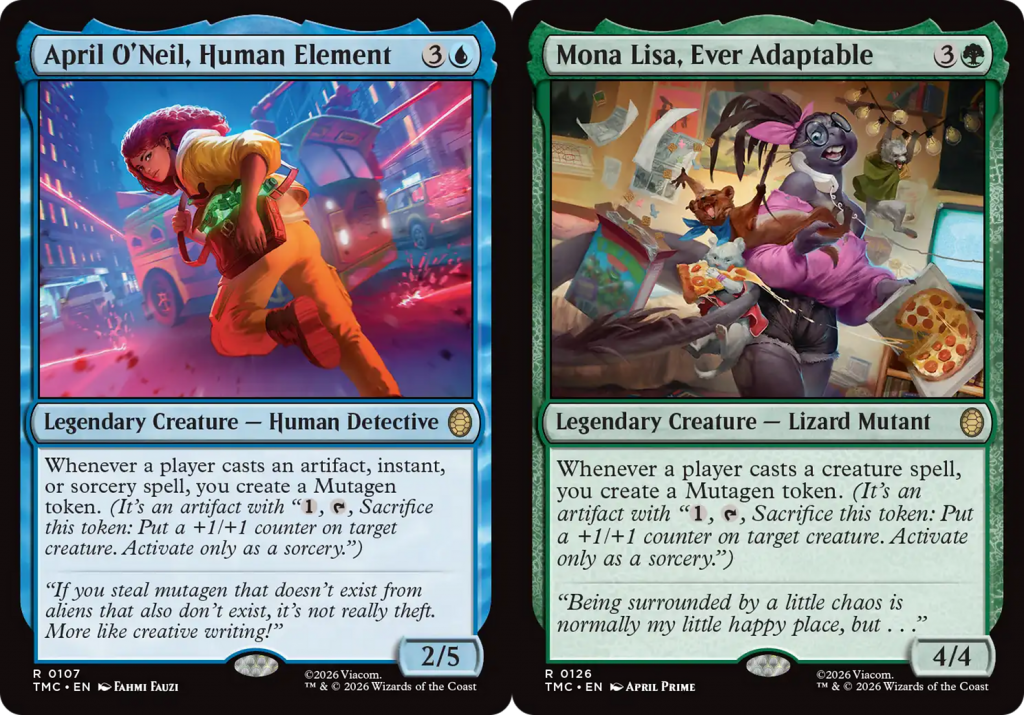 Saffgor: Another twofer, because they're going to play fairly similarly in the 99. In either case, both April & Mona Lisa key off of any player performing a common game action(s), resulting in an untapped Artifact token; these can be used for everything from mana with Urza, Lord High Artificer, evading stax, or even comboing off with Clock of Omens and similar. As a Commander, I think I prefer April, but plenty of decks would love the free value onboard that these afford.