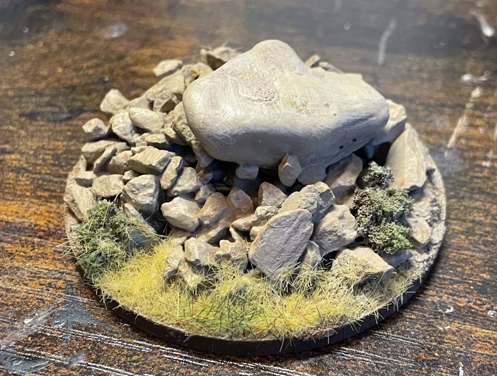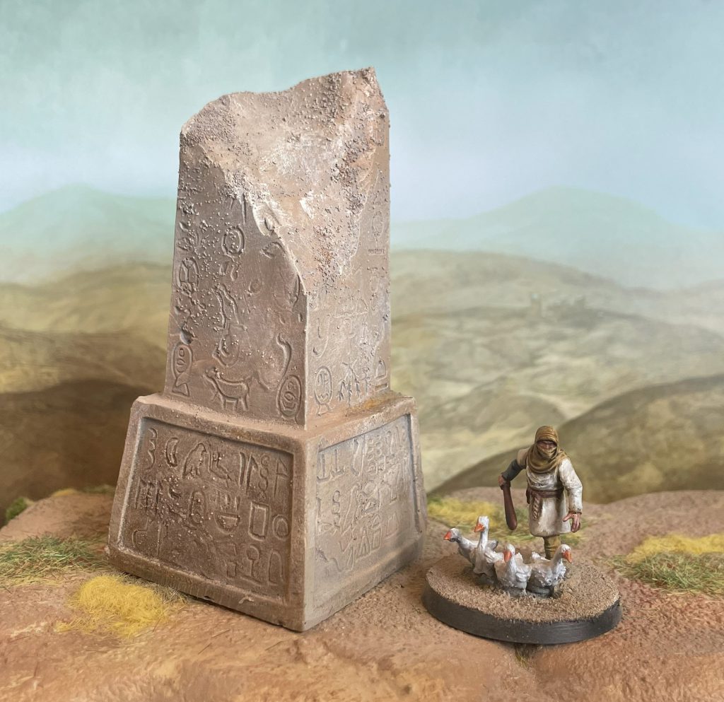 The earliest phases of human habitation in the area that will become Nakam Iya’if won’t leave traces that will persist to the first era I’m going to model (the 11th century). The Egyptian Neolithic may return in scatter terrain for a Silver Bayonet and Napoleonics board (watch this space), but out on the westernmost fringe of the Nile Delta, the first major construction in our area is going to be marking a conflict in the area between the New Kingdom and Libyan tribes. After Pharoah Merneptah won the battle of Perire (about 1208BC), we’re going to say that he needed a powerful warning to the tribes over the “border”. Our village is out beyond the intensively farmed delta, perhaps at the very limits of the riverine power of the early Egyptian dynasties, so let’s commemorate that by raising a marker on the borders of the Empire, perhaps sited on a convenient hill: