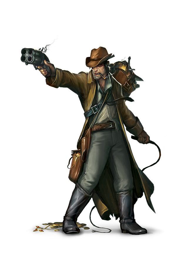 "i've got ms. croft's lawyers on line one!" "tell them i'll talk to them after i'm done with mr. jones's lawyers!" Credit: Wyrd GamesMalifaux is full of hidden tombs and ancient treasures, and Lucas McCabe has plumbed 'em all. Well, almost all. He's so far stayed away from the Necropolis that sprawls beneath Malifaux City - and with good reason. Not only is the sewer full of Resurrectionists, but the treasures of the Necropolis are of the distinctly "hostile to human life" variety. That's where Plague was imprisoned, remember. Still, McCabe knows he'll have to go there eventually. He's already been fired from the Guild, and his current employers - the Ten Thunders and the Explorer's Society - are not known for their loyalty. He's been stockpiling the choicest relics and preparing for the day when one or both of his paymasters cuts him loose.