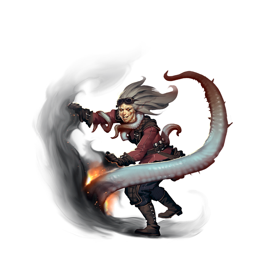 The Tale of What Happened When I Joined The Explorer’s Society Vol. IV: My Ship Captain Is a Tentacle Grandma! Credit: Wyrd GamesMaxine's been fascinated with the Burning Man since before she even came to Malifaux. She arrived on this side of the Breach after an ill-fated plan to track the Burning Man's portal creation went awry. After being rescued by the Society, she docked her damaged ship at the edge of the Bayou and set to work trying to unravel the mysteries of the man in the sky. Progress was slow, so she decided to consult an authoritative source: the Flammae. Basically, for those Eisenhorn fans, she Uber Aemos'd herself, and here are the results.