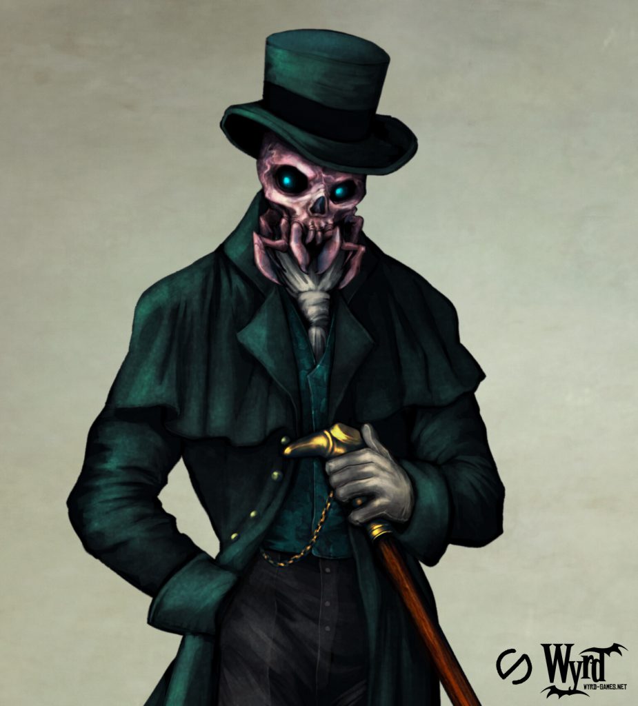 a dapper man who knows how to dress for success. Credit: Wyrd GamesLucius isn't the only spymaster in town anymore. He figured that out when one of his Mimics came back with a bug face. Turns out the guy'd gotten himself infested with Cadmus mites, which interacted oddly with his Neverborn biology. Now Lucius and Cadmus share custody of Cavatica, which neither is happy about, but both accept for now.