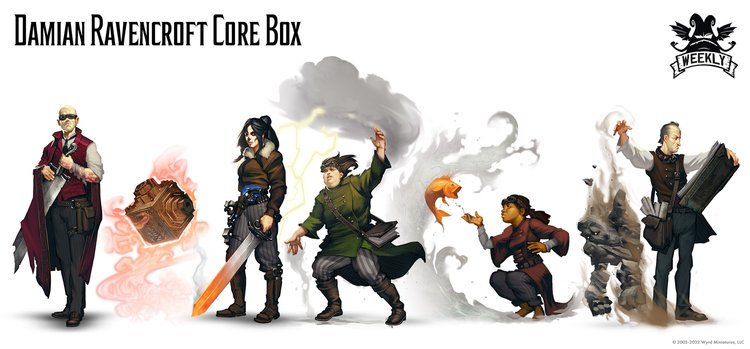 L->R: Damian Ravencroft, the Puzzle Box, Bellaventine Thorpe, and three Dabblers. Credit: Wyrd GamesDamian Ravencroft always loved puzzles. One of the most enduring mysteries he encountered in a long career was Sonnia Criid's Yellow Crypt: how did she transform rogue mages into mindless, magic-devouring Witchings? Damian, committed to freedom of inquiry for those of a magical persuasion, decided to find out. He undertook the most dangerous gambit of all: allowing himself to be captured and reduced to Witchling form, he stored his memories and intellect in a puzzle box.