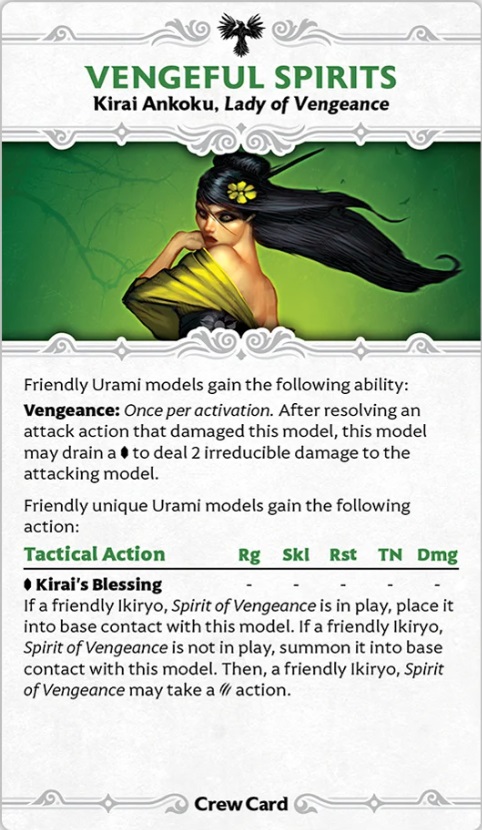 That's it for limits. But there are some new elements added to hiring, too. The first and most consequential is Crew Cards. Previewed in Third Edition with the Configuration, Crew Cards are an "upgrade" you get for hiring your Master. Each Crew Card modifies your entire crew in a variety of ways - giving them new actions, new triggers, new passive abilities, and so on. Each Title has its own Crew Card, and so that means the models in the keyword may function entirely differently depending on which version of their Master you hired. Some of these Crew Cards are pretty wild - for example, Nellie's Crew Card has a "power bar" that fills based on actions her Crew takes, and gives bonuses when it's full (as well as allowing you to spend it down for effects).