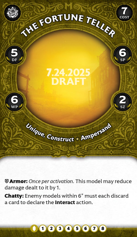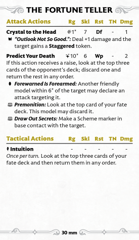 Intuition is just flat-out great on every model that has it, and as a Signature, you will do this every time. Straightforward. Remember this is also copyable with Improvised Parts and is a strong candidate. Overall, the Fortune Teller is sort of a grab bag of abilities that doesn't really come together, but if you have the space in your list she's decent support.