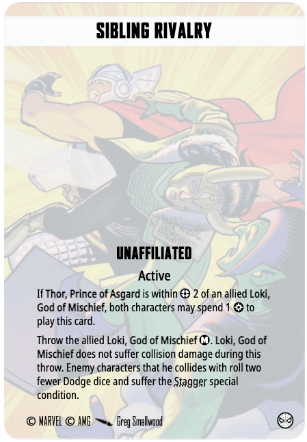 Alternatively, you can use this card offensively to get an extra stagger in. It can be part of Thor’s activation. It can be used like a pounce for Loki during his activation. It also allows for aggressively placing Loki forward to enable his God of Mischief superpower to make your opponent’s superpowers more expensive.