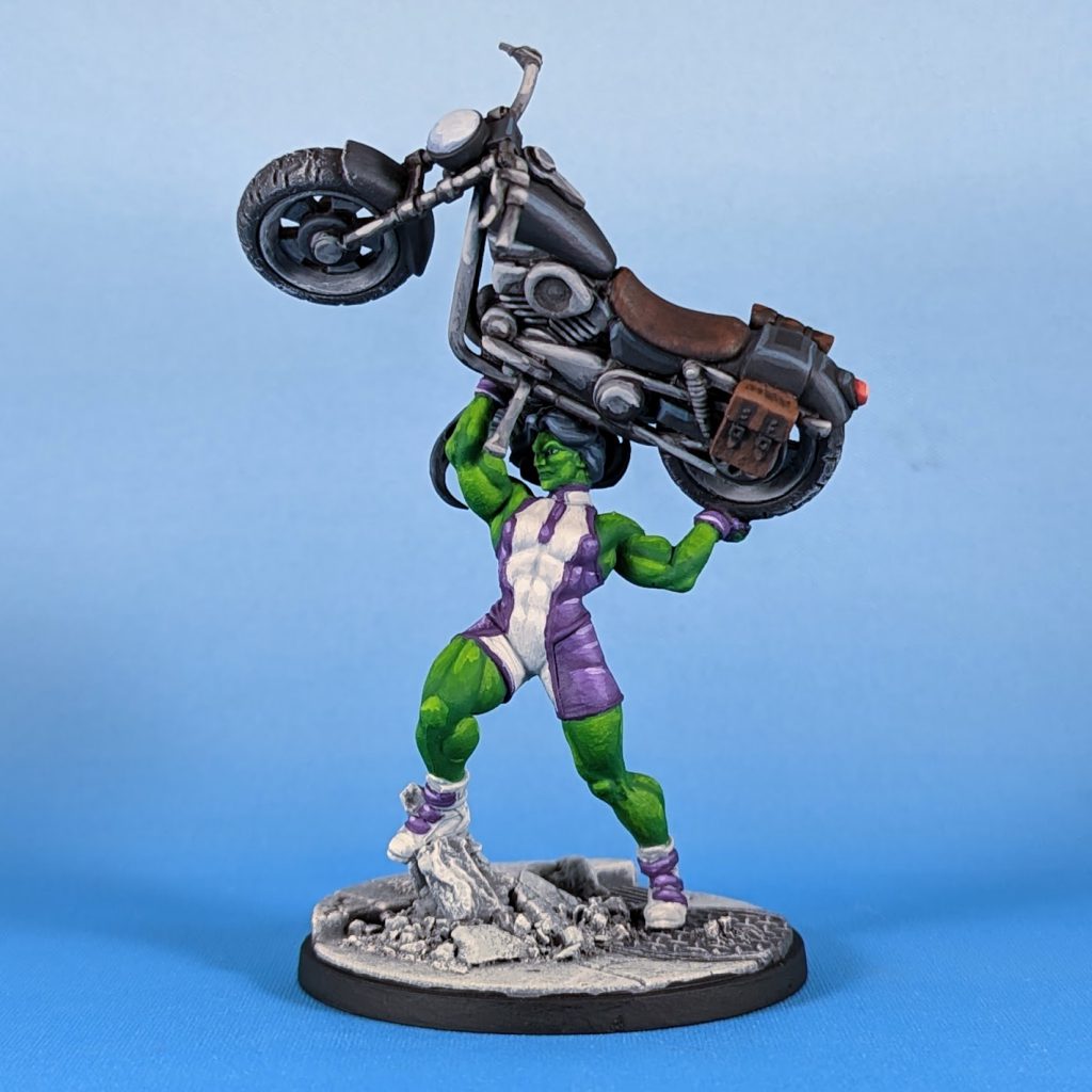 She-Hulk for Marvel Crisis Protocol painted by Crab-stuffed MushroomsDoreen comes with A-Force and Avengers affiliations, and much like Gwen, she faces plenty of competition for her place from other 4 threats. But also like Gwenpool, She-Hulk's A-Force leadership seems a good potential source of power gain for her.