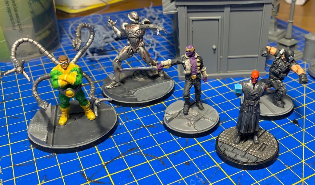 Anyway, to get you into the Marvel heroic mood, you literally have to assemble your Avengers. The minis are mostly very easy and intuitive to build, but each one seems to have one or two randomly tiny and fiddly pieces to attach. Captain America’s belt pouches spent a lot of time bouncing off the floor before I finally got them in place and I actually lost half of one of Captain marvel’s arms between the floorboards. The miniatures are lovely though, and with their slightly larger scale than many tabletop games, easier and more enjoyable to paint too!