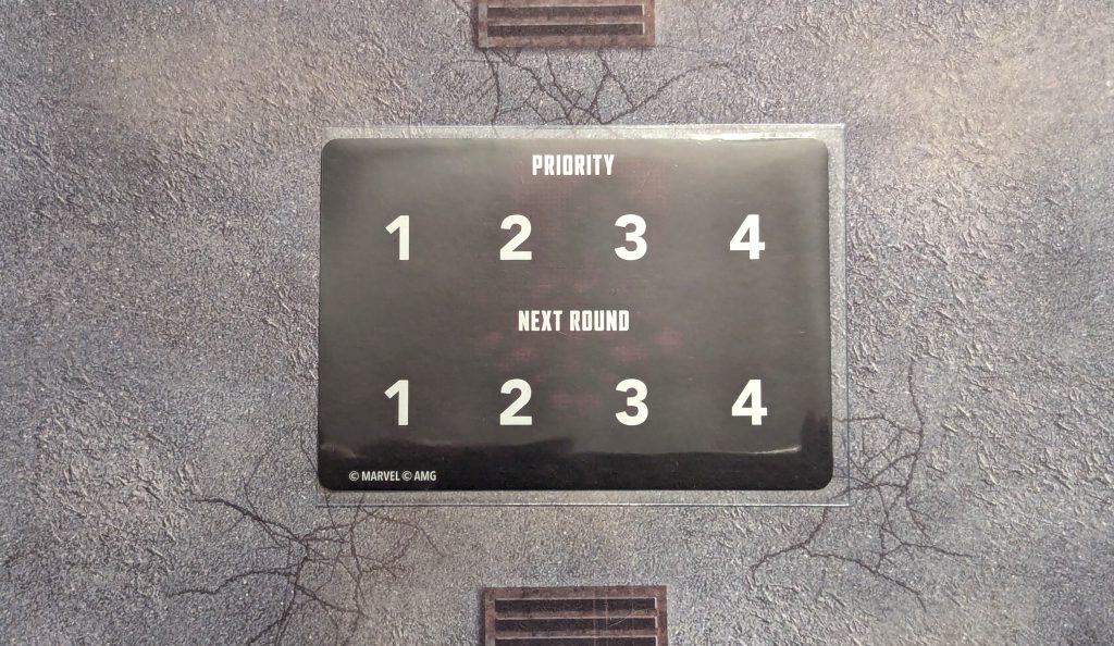 Since this is a four-person event, we have modified rules for Priority and Activations while playing this scenario. Instead of the normal Priority rules, we have a new Priority Tracker card which will be used for tracking who's turn it is. Players begin the game by randomly selecting designated faction tokens out of a bag and placing them in order on the Priority Tracker. As the game plays out in the same alternating activations style, continuing to each player on the tracker until all of the players characters have activated. As players finish their turns, if all of their characters have Activated or Daze tokens, they then move their Priority token down to the first available Next Round slot on the Priority Tracker. During the Clean Up Phase, any effects that need to be resolved by players are completed based on the order of the Next Round section and then all of the tokens are moved up to the Priority section of the card.