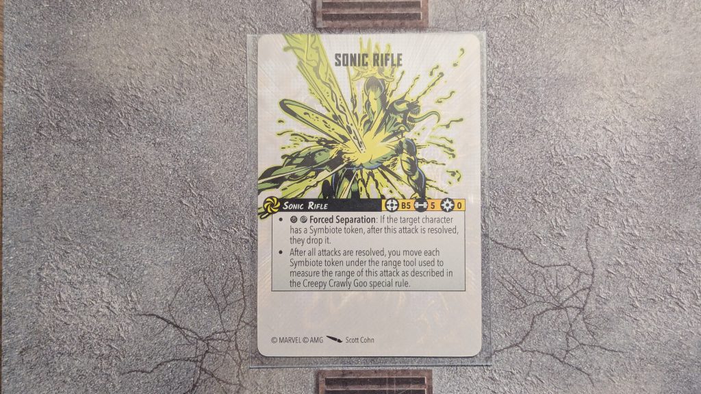 credit: BrushwizardDuring the game, players can knock Symbiotes loose from their hosts by using Sonic Rifles. The Sonic Rifle gives the character holding it a new attack called Sonic Rifle. This attack is a Beam 5, Strength 5 attack that costs 0 power to use. It has two special rules, one of which also references the Creepy Crawly Goo rule.
