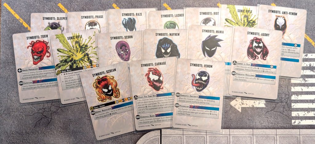 credit: BrushwizardThe main feature of this scenario is the Symbiote Deck. This deck is comprised of 16 cards, 14 symbiotes and 2 sonic rifles. Each symbiote has their own special abilities, which can lead to some crazy combos with characters.