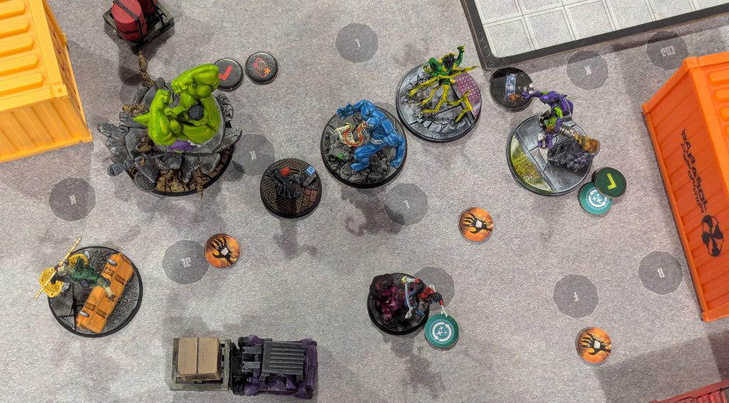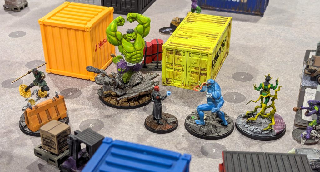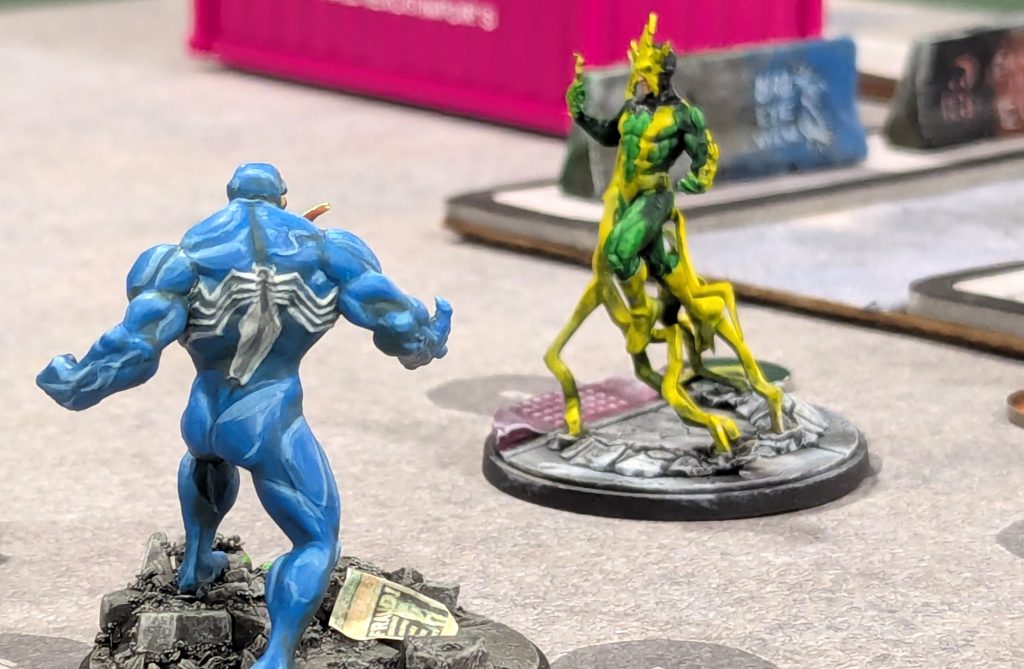 Other than that, it’s basically a battle royale and a good reason to just slam models into each other. I used a Cabal list featuring Red Skull, Baron Mordo and Nightcrawler, my wife brought Immortal Hulk and Venom, one of our friends brought She-Hulk and Ultron and our other friend played a Spider-Foes list of Green Goblin, Lizard and Electro. More on how that all played out in a minute.