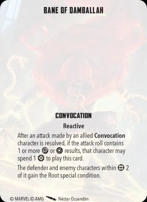 Ancient One is one of Convocation’s best brawlers, bringing a great suite of attacks and some powerful utility. At first glance, Ancient One may seem pretty easy to take down with a 2-3-5 stat line. However, Martial Artist lets her count blanks against Physical and Energy attacks within range 2, and she can reroll up to two dice whenever she defends or dodges. Winds of Watoomb synergize with Martial Artist, letting Ancient One push an attacker closer to her when she’s targeted, ideally getting them into Martial Artist range or moving them off of a Secure.