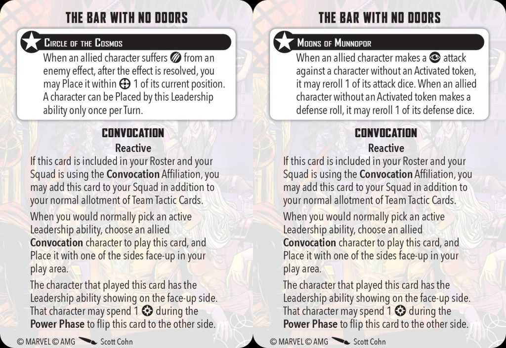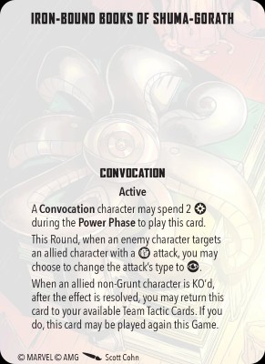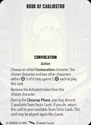 Book of Cagliostro has extremely high potential, but it can be hard to pull off. Three characters within 3 of each other isn’t always going to happen consistently, and two power on each of them can also sometimes be hard. However, the upside of giving a powerful model like either Doctor Strange two activations in one round can win games. Just be careful not to give away priority with the extra activation at a bad time.