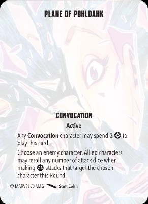 Plane is, more or less, a delete button. Convocation models all pack powerful mystic attacks, and unaffiliated allies benefit as well. Enabling full rerolls against an enemy character for a round means they’re extremely unlikely to survive. Consider taking this card in almost every game.