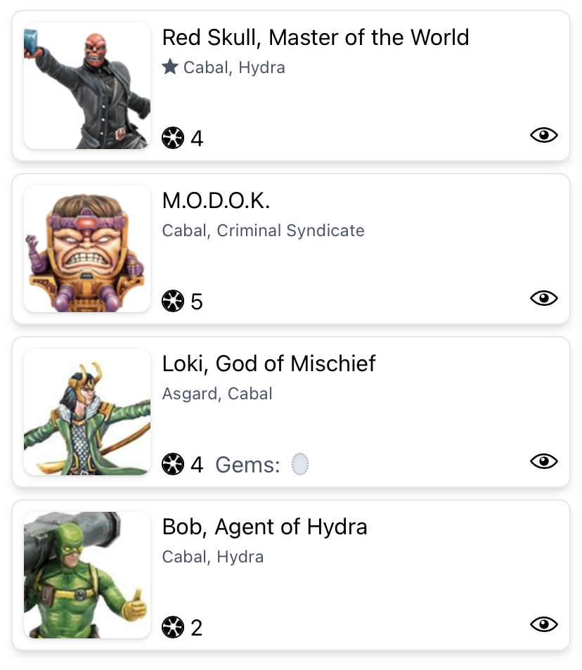 Courtesy of Jarvis' ProtocolMaybe… MAYBE this one is silly. Daredevil isn’t at his absolute best because he cannot get more than three enemies in range for his spender. Buuuut he is very likely to get three enemies in range for his spender. Hawkeye and Iron Fist can stack six different conditions between them. Ghost Rider brings a couple more. Plus, Iron Fist has the coveted activate-an-enemy-model trick with his Iron Fist. It will be tough to get off because you may not get priority. Although, to be fair, Thor and Bill are likely to get quite a few dazes, so you may end up with priority on an Iron Fist that has the needed eight power to use his namesake.