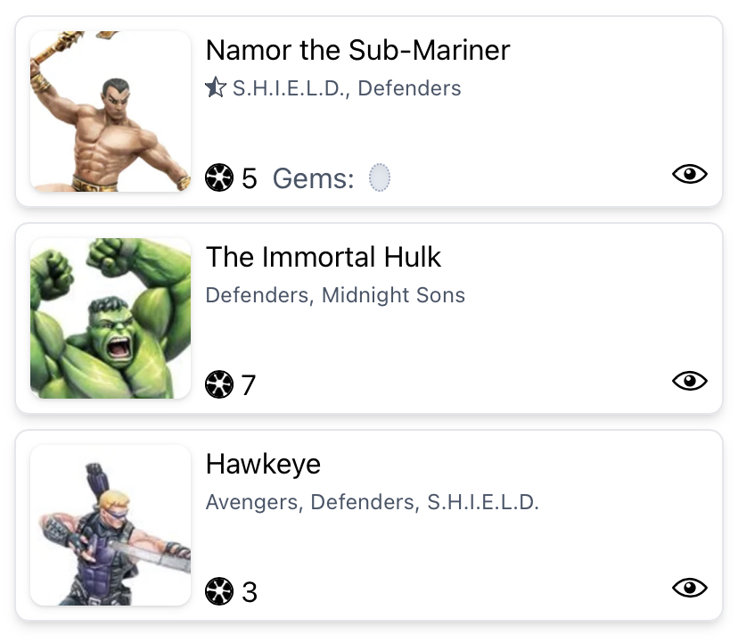 Courtesy of Jarvis' ProtocolProbably a better use of high threat models. The Immortal Hulk is a beast. And since none of BLT are particularly good at denying power for damage dealt, Hulk flips over with a pool of health before he starts healing back up. Namor gives rerolls, plus the defensive rerolls from his leadership. Namor also has the added bonus of being able to prevent Odin’s blessing from saving your opponent. Hawkeye can easily be replaced by any SHIELD affiliated three threat. I like Hawkeye though.