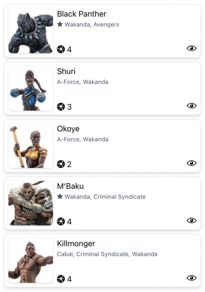 Courtesy of Jarvis' ProtocolA lot of pushes, rerolls to match Loki’s leadership, M’Baku adds some resistance to throws. Okoye has a bodyguard, which means that your opponent has to deal with her or she can pull an attack off of a key target during a key activation, which is more than most two threat models can do. Plus, a high model count can power up Helios Laser pretty well.