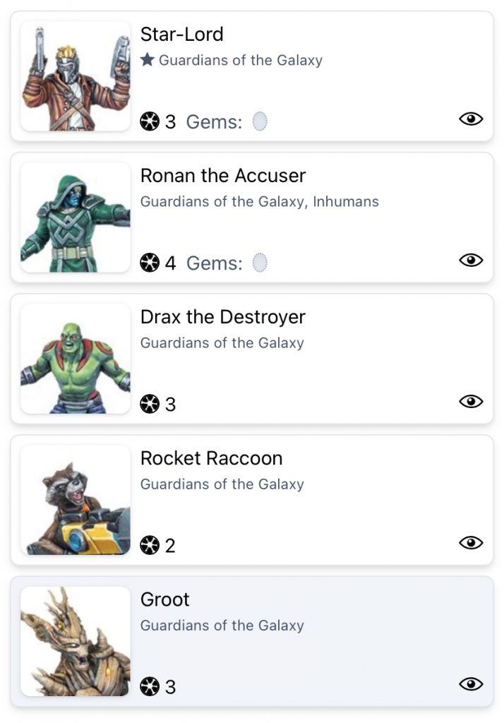 Courtesy of Jarvis' ProtocolI didn’t mention Ronan earlier. Ronan might be the best model for punching up into a Kaiju. He can give shock, stun, stagger, and judgment to a kaiju (like Thor, Hero of Midguard). His Accuser ability means that if Thor dazes or KOs him, or if Loki gets the last wound through with Oh My, What a Pitty, Ronan can respond with a short move and an attack. That attack (if Ronan just took damage) will likely be Kree Justice, which could stagger and stun a nearby big hitter. Then of course, Drax punches up better than most three threat models. Especially against a tall list. All of this paired with Star-Lord’s leadership adding a little dice efficiency to the list means you have a chance to fight back directly against BLT, while also having enough models to try to outscore them if you can survive.