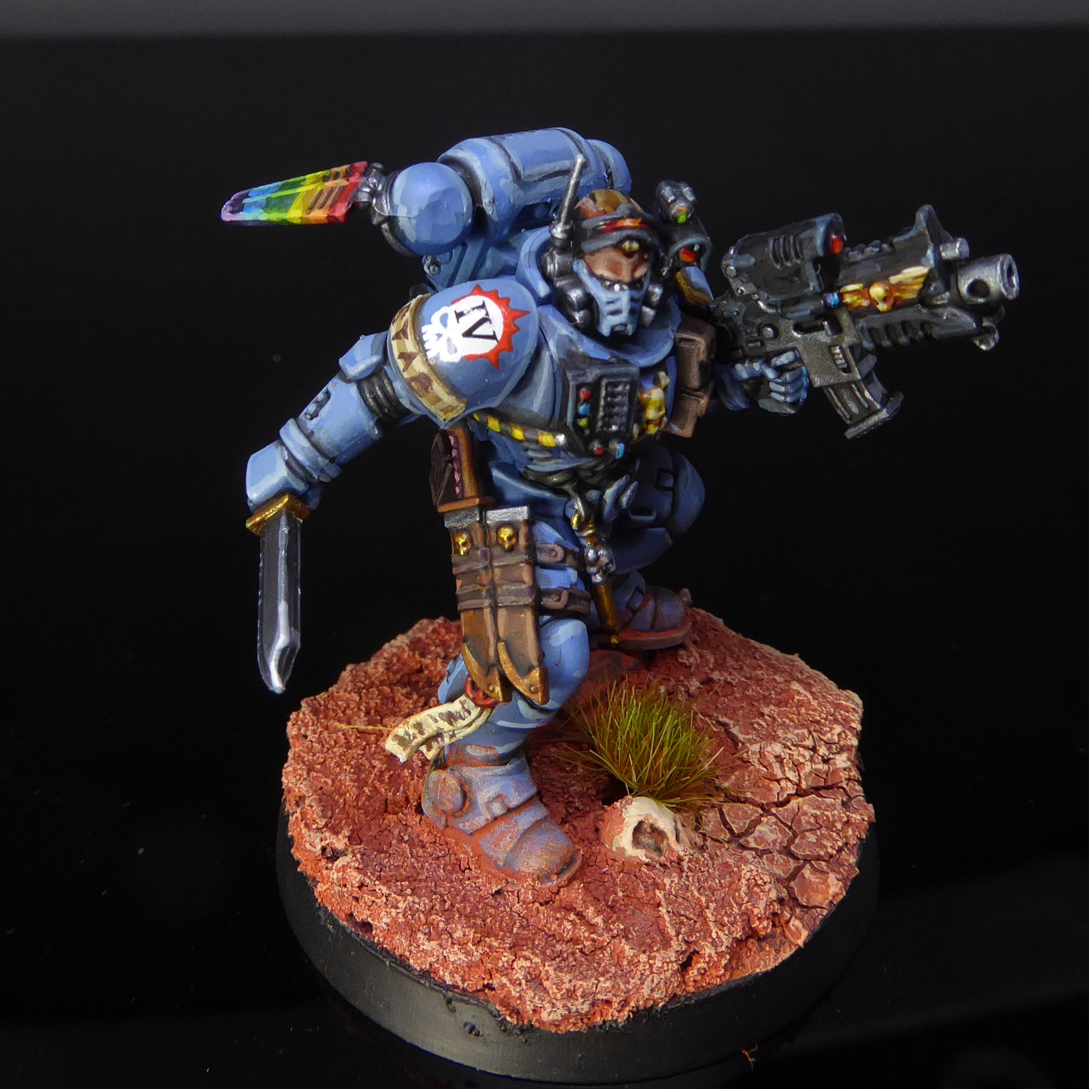 The Infiltrators are definitely my favorite of the Primaris infantry models. The monopose sculpts are way better than the Intercessors found in Dark Imperium, and the cut back armor is just really appealing to me. Sergeant Scratchface there might have my best face painting that I've done.