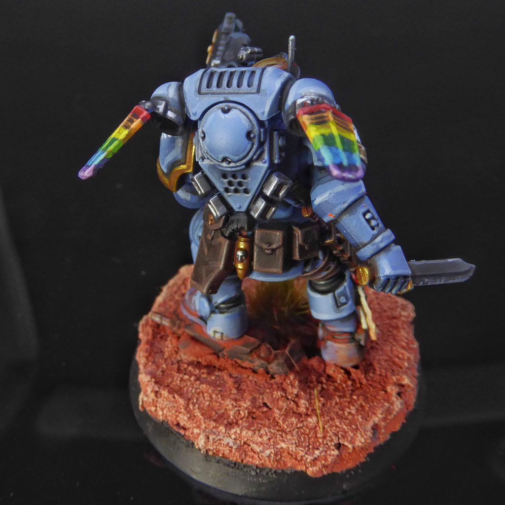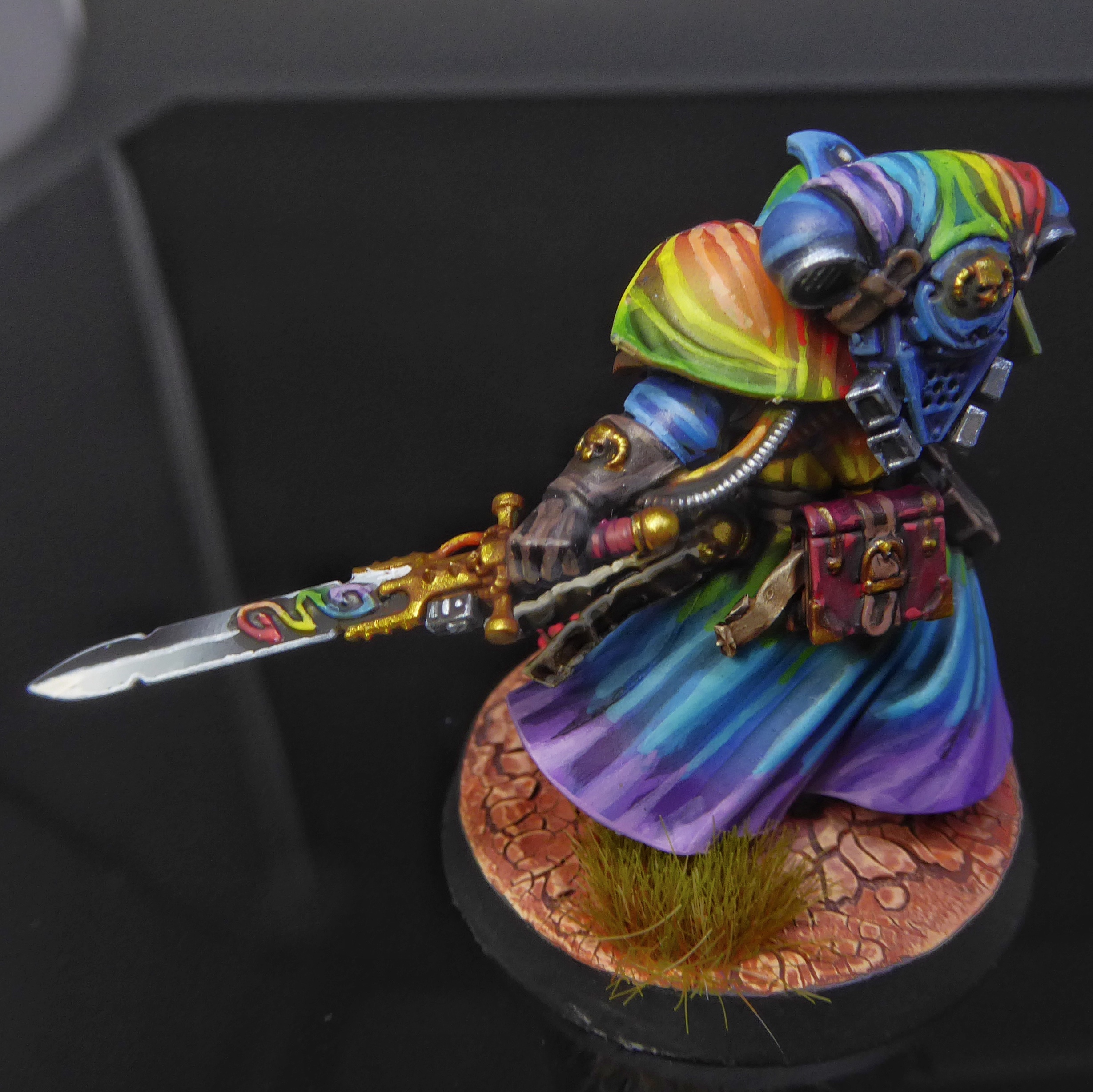 I know everyone else has already made the joke, but he is definitely saying "M'lady"This model is kind of the end game of doing my new rainbow scheme, and I think I pulled it off pretty well! Compared to my Eliminators and my Phobos Captain, it is much less 'scratchy' looking.