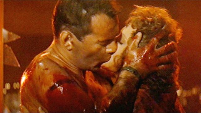 You look at that and tell me it isn't a Christmas kiss. (Copyright 20th Century Fox)John McClane saves his wife, kills Hans Gruber with her, and then as they embrace while exiting the destroyed Nakatomi Plaza, Holly defends her husband from parasitic journalist Thornberg, and disgraced child killing cop Al Powell saves the day by killing surviving terrorist Klaus as he and McClane share a knowing glance. Everything works out, the heroes are redeemed, the family unit is restored, and “snow” falls while the couple walk off together to the tune of “Let it Snow”. John McClane realizes that what he needed all along was his wife, and stops at nothing to save her, while she too realizes she needs her husband back in her life, completing the (fairly problematic) cisheteronormative holiday romance redemption story; frankly, the only real difference between the narrative of Die Hard and most Hallmark Christmas films is far less people get shot in those. They both really love cops, though.