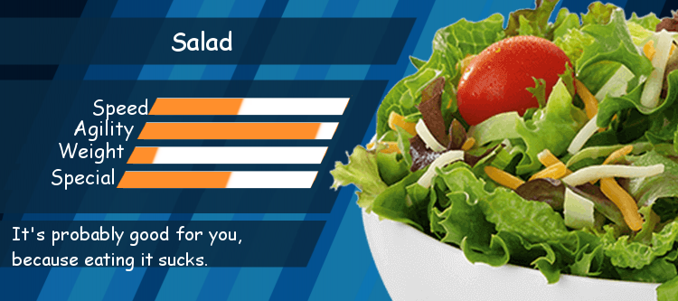 Usually salads are seen as a punishment, to atone for eating too richly the night before. I don’t abide this line of thinking, and I’ll try to force myself to enjoy a big shitty pile of lettuce, but it’s usually just kind of awful. You can maybe stretch the definition a bit and allow stir-fries here - those bang - but the base gameplay of cold veggies or quinoa, it’s not my favorite Eating Mission to embark upon.