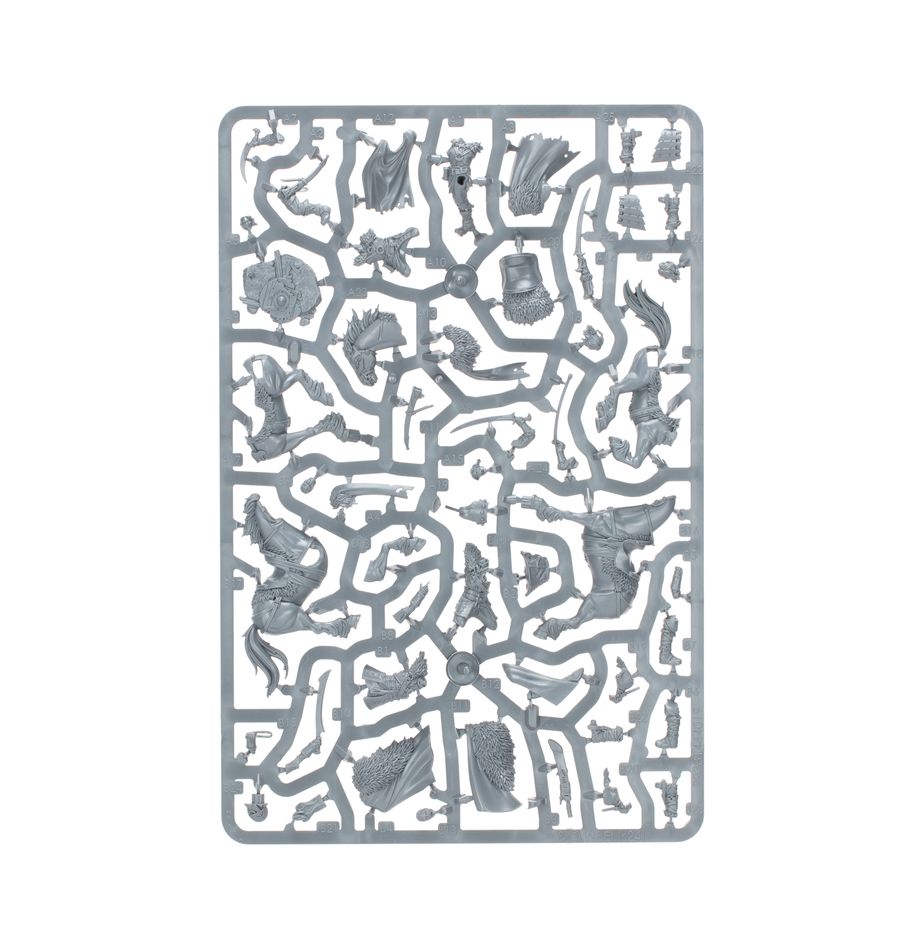 The Battle for Edoras box brings two new evil plastic kits: Hill Tribesmen and Wulf & Generall Targg. Like their Rohan opponents in the starter box, the Hill Tribesmen kit is a 3-section frame and a half, separated by loadouts.The heroes are on a single frame, with mounted and on-foot versions of each.