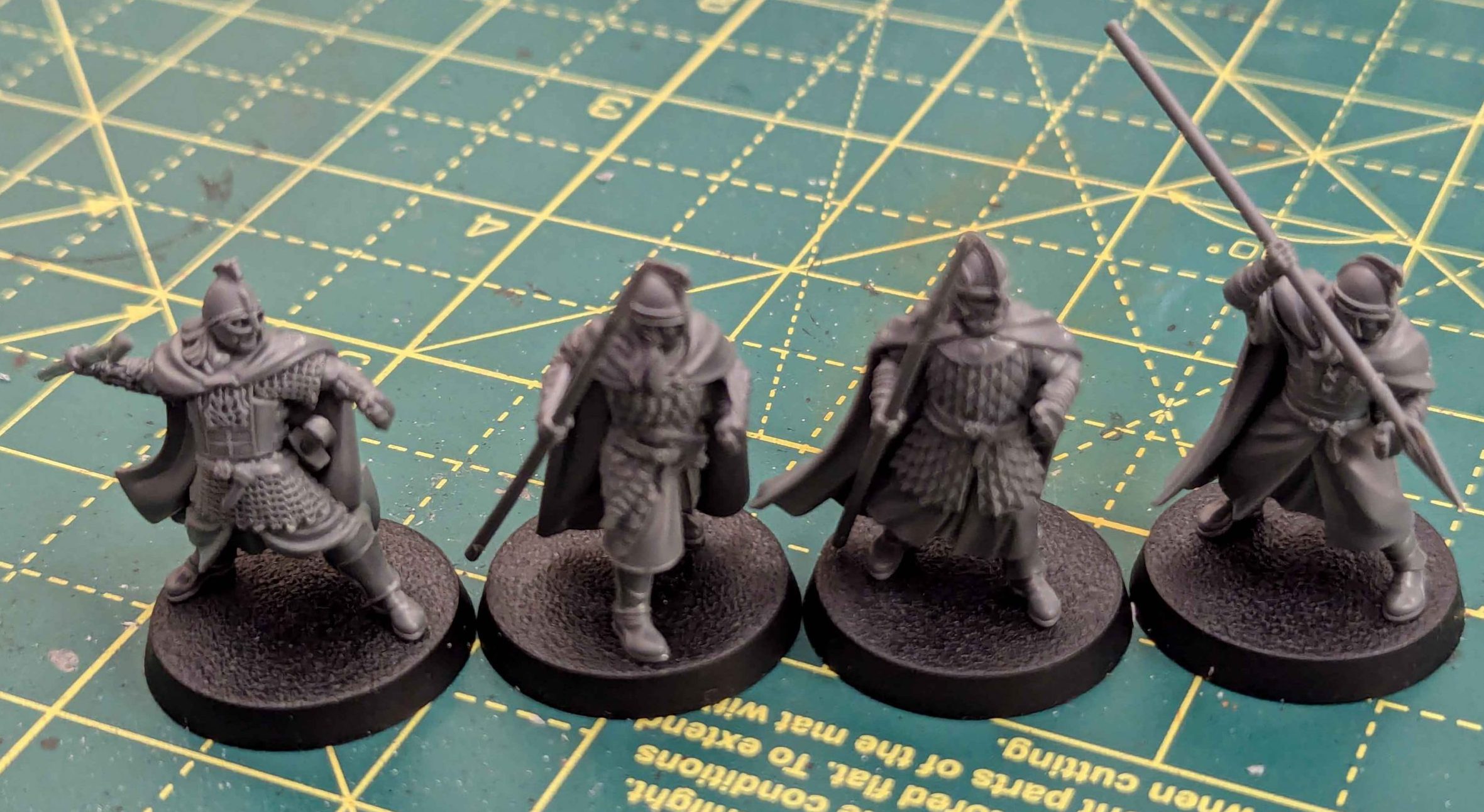 Warriors of Rohan with SpearsThe warriors with spears are a solid set of poses, with one poking, 2 standing (and good for a shieldwall) and one throwing their spear.