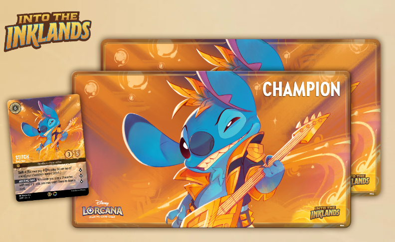 Ravensburger has really upped the ante with their Lorcana organized play offering and store champions are being crowned across the US over the next few weeks. These absolute paragons of Lorcana skill are taking home a special Rockstar Stitch playmat emblazoned with the word “CHAMPION” while runners-up are getting one that does not have the emblazoning. There are also some Enchanted promos up for grabs to top finishers but friends you are not reading the words of a top finisher by any stretch of the imagination.