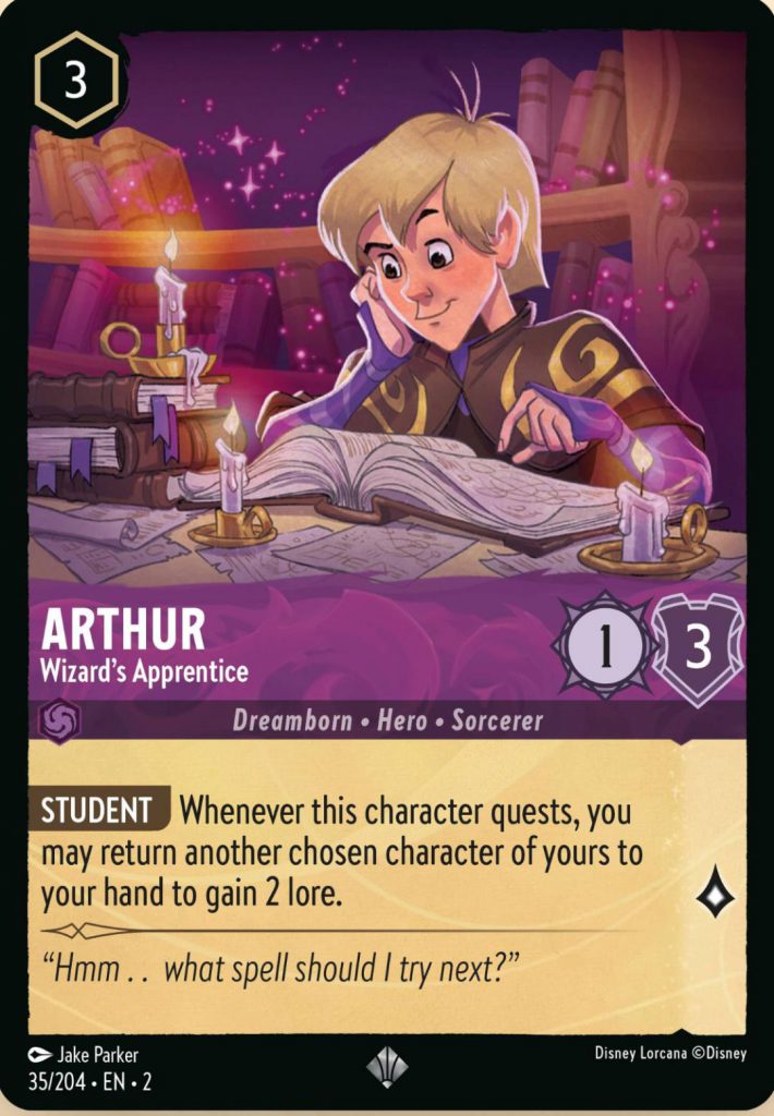 Arthur, Wizard’s Apprentice – Bounce is huge in this set and it’s almost all in Amethyst. The Sword in the Stone characters are all part of the suite and I think that Arthur is the most effective and compelling of the lot. When he quests, his Student ability allows you to return another character to your hadn to gain 2 lore. Naturally, you want this to be the Merlin, Goat which also gives you a lore for leaving the table. Then you play said Merlin, Goat again and get another lore and set the combo up again. This was another card that doubled in value when folks realized its potential.