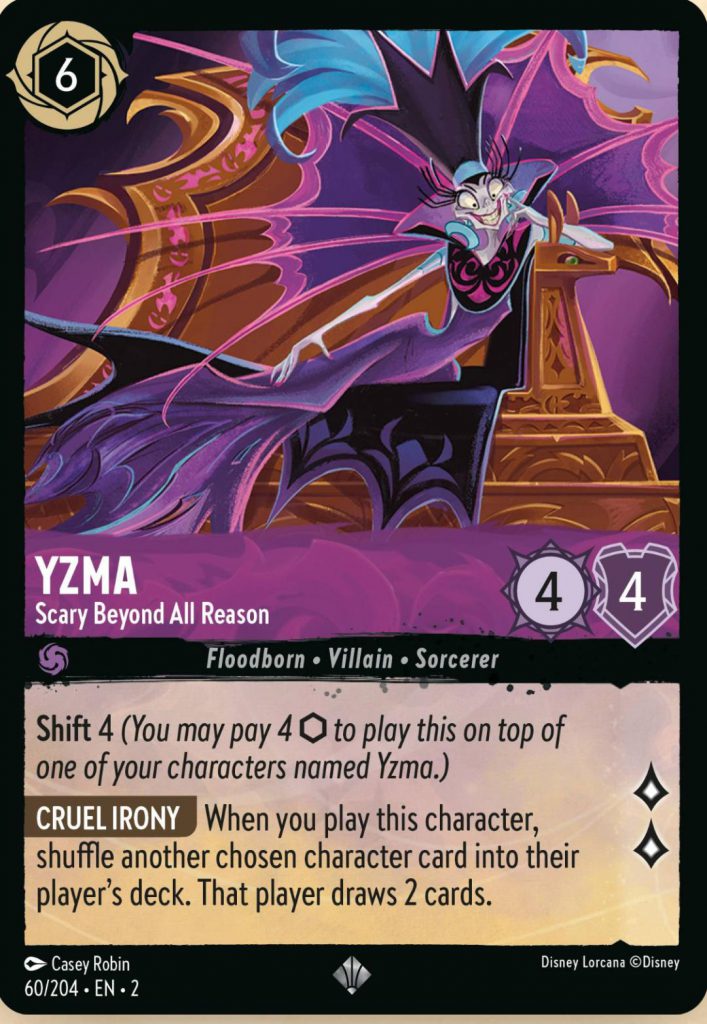 Yzma, Scary Beyond All Reason – A versatile bounce option that shifts for 4, this Yzma’s Cruel Irony is a surprisingly versatile play. When she comes into play, you shuffle a chosen character into that players deck. So it’s functional removal. However, the character’s player draws 2 cards so there’s either a tradeoff for the removal or you can use it on one of your own cards (such as that Merlin, Goat) for a clutch draw. I completely overlooked this card until a friend sang its praises, and now I’m a believer.