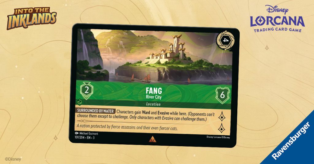 But the biggest shiny and new is Locations, an entirely new card type that will introduce completely new strategic considerations and deckbuilding options. These sideways cards cost ink like usual and are put into your play area. They automatically generate Lore every turn, and can be Challenged and Banished like a character although they do not act as one. Characters can move to, from, and between Locations for an ink cost, and of course some Locations have special effects that affect characters at them. It's funny because quite literally two days before the first location and the mechanic was revealed in the Lorcana Discord, I told my kids “I bet they are going to add Locations sometime in the future”. And here we are.