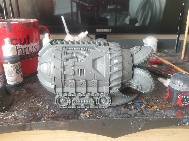 So what do I think of it overall? As a kit, great. I don't love the aesthetic of the parts coming loose in a baggie, but whatever. It went together nice and easily. It was pretty straightforward to paint, and there's enough going on to have some fun with it - and given its intended function, it's a great target for some weathering. It's a little bit too toy-like to be truly great - in part that's Mantic's aesthetic, but putting it next to GW stuff emphasises the difference in a way which doesn't favour the drill. That said, you can't argue with the price, and on its own merits it's a perfectly fine kit that will excel at the job of "be a big nasty looking drill," and of course if you wanted an even bigger drill you can buy extra compartments as above - you basically just duplicate the main body section, and I guess you can probably do that infinitely? Cool.