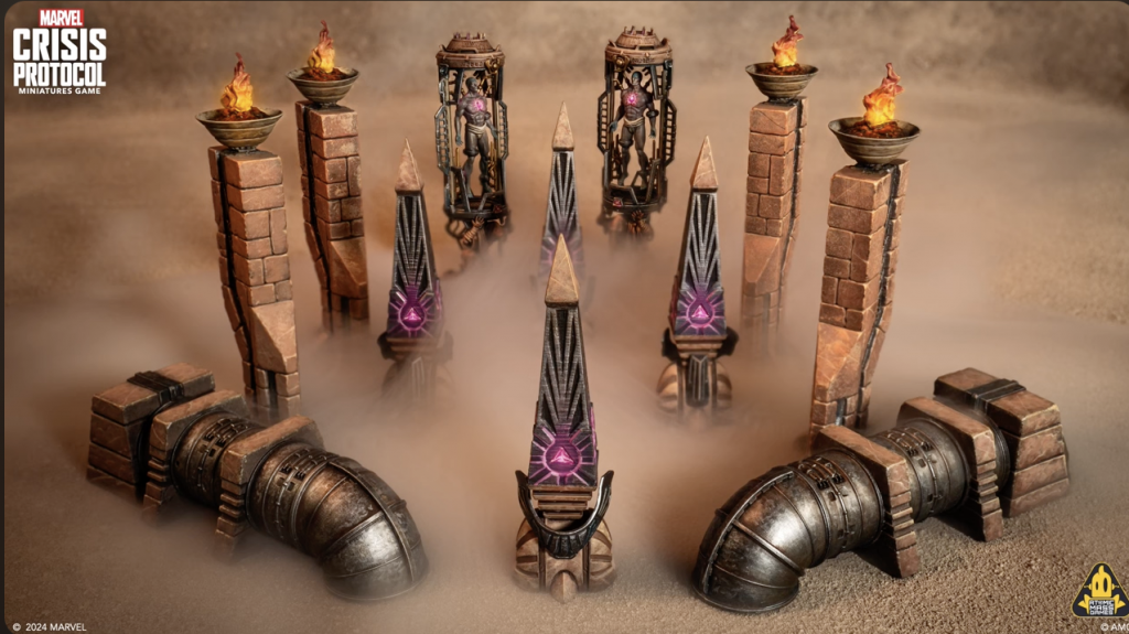Copyright AMG, MarvelThree new themed groups of terrain were featured here that are tied to Apocalypse.