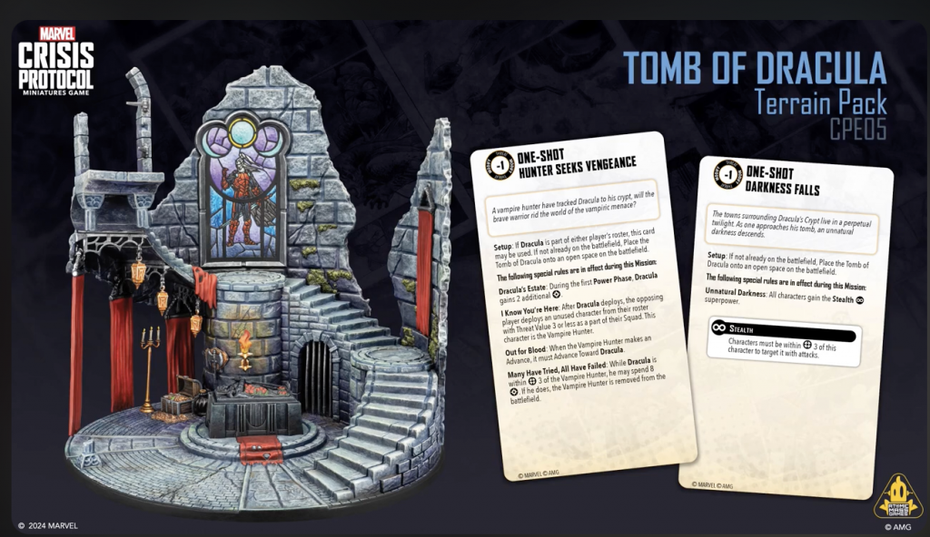 Copyright AMG, MarvelThe second half of the Dracula's Tomb set, the team only revealed the first half of Dracula's card. Dracula is not a Midnight Son, but it was hinted that he slots into some of the "evil" affiliations in the game, and that he will have a TTC for his own affiliation, Vampire Thrall.