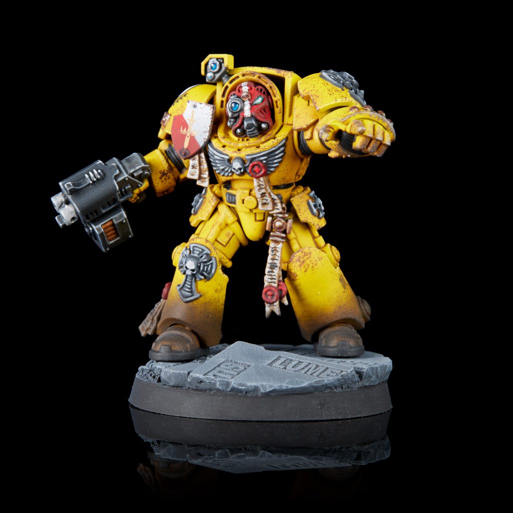 Imperial Fist Terminator Chaplain. Credit: Jack HunterJack: I wasn't particularly wowed by this guy when he was previewed, and actually building him didn't make me like him any more. His default pose felt like he's giving away his crozius, so I swapped the storm bolter arm for one that looks better raised out of the terminator box, and lowered the crozius. He looks a bit more like he's striding forward, but I'm still not in love.