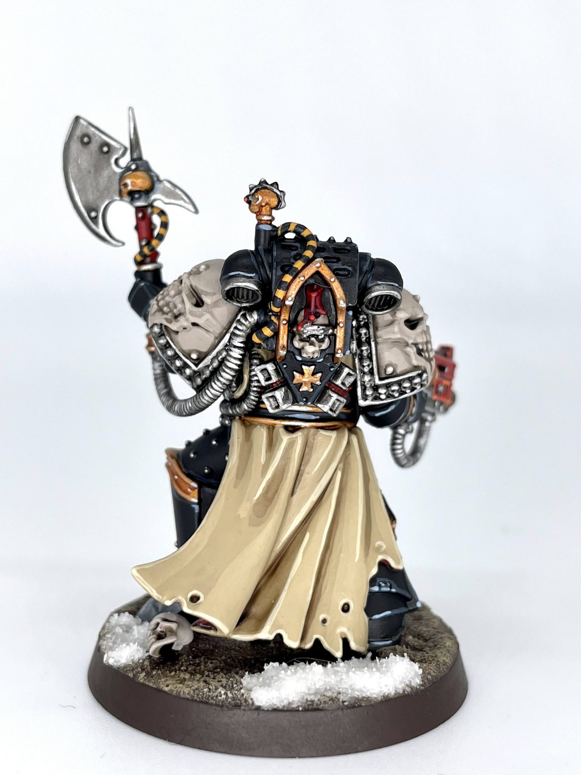 Black Templars Castellan. Credit: SRMIt was a marathon 2 days of painting, but he's done and was frankly a load of fun to paint. It owes to the inspiration here, but it's rare we get a model this weird from mainline GW, especially for any flavor of Marines. The proportions and aesthetics are all ripped straight from the artwork, even moreso than a lot of the recent models based on classic art like Mephiston or Helbrecht. Honestly, for as many times as I'd looked at that John Blanche Templars piece, I never noticed the chonker Marine this guy's based on was wearing a robe on his torso. All this time, I thought it was just bone white armor, until I really pored over the artwork while working on this guy. Anything that helps me further appreciate a piece of art I've always loved is aces in my book.