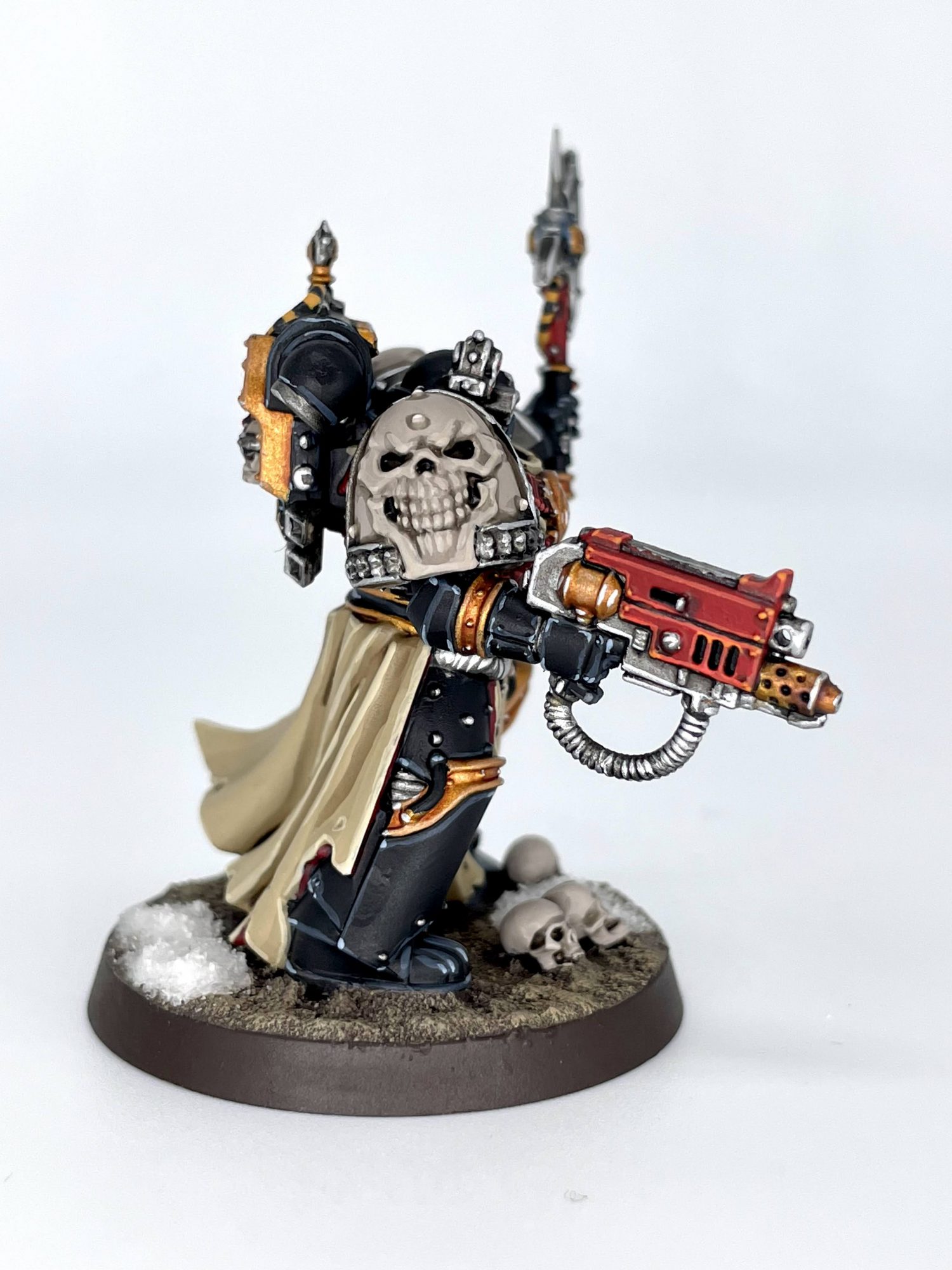 Black Templars Castellan. Credit: SRMWith that, the chonker is complete! You can paint skulls how you like, but I painted them using Rakarth Flesh, that 1:1 Nuln Oil/Agrax mix in the recesses, and highlights of Pallid Wych Flesh.