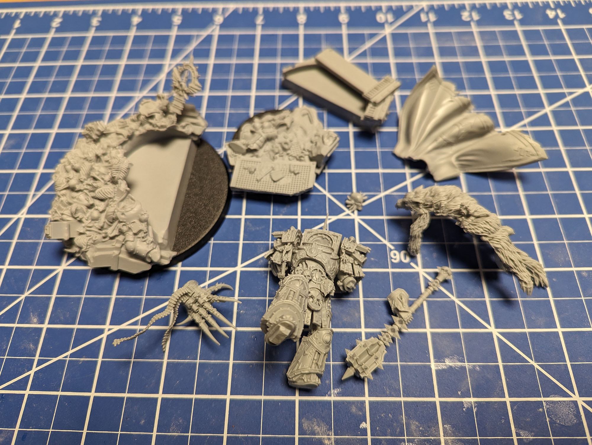 Assembly of Horus is pretty typical for any modern FW model. Cast out of resin, he's not quite perfect, with a few minor mold lines and gates to deal with, but they're mostly kept to hidden areas and the details are sharp. Do make sure you clean him well, even after scrubbing once there was still some mold release on the cape when I went to prime it.