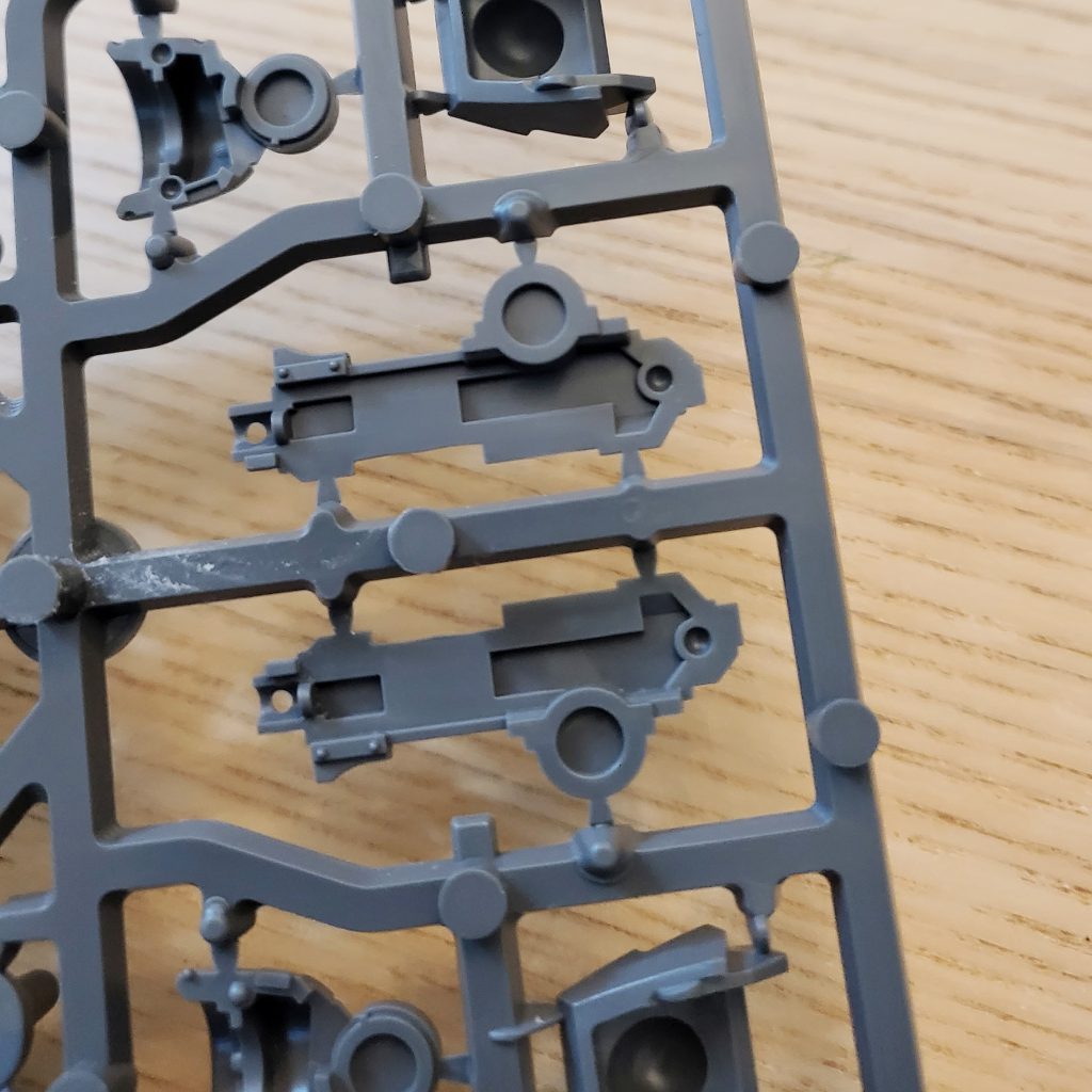 Jack: This looks basically identical to the resin one I built years ago with the exception that everything is actually square and goes together. It adds a new option for the hull guns - lascannons in addition to the existing heavy bolter or flamer options (or assault cannons if you play a cool chapter). The cupola sprue is also absolutely covered in pieces - I had enough parts to build both a pintle heavy bolter and havoc launcher option, and have a spare magnetized multi-melta cupola off a land raider I can swap in. Anything you could want to put on has parts here.